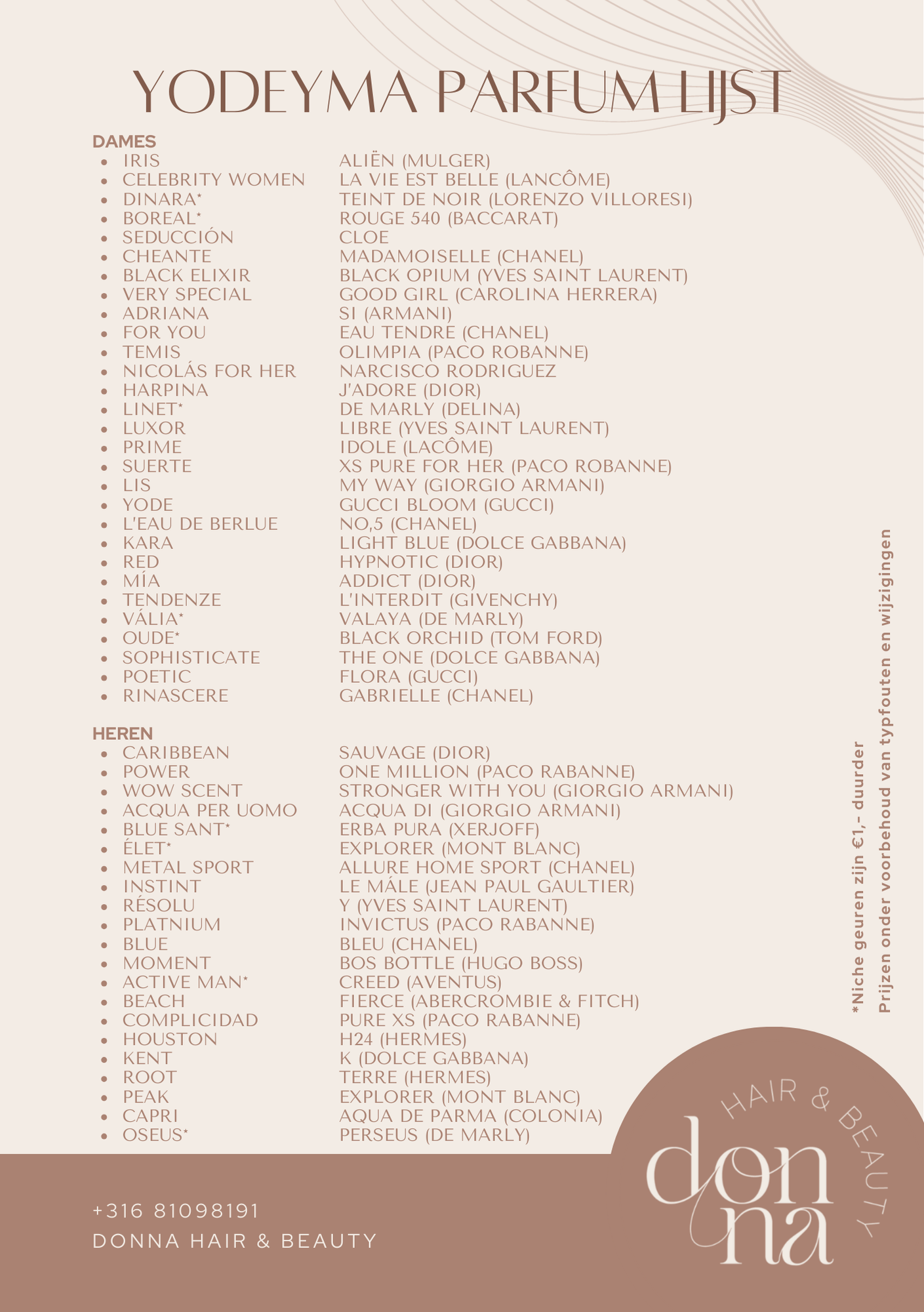 Parfumlijst YODEYMA